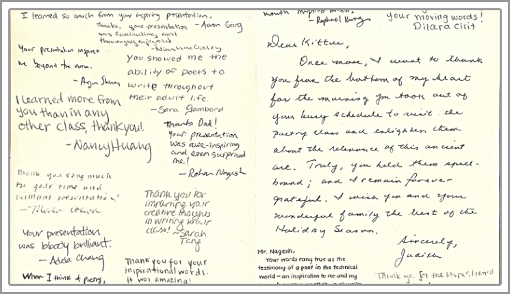 I had a great time sharing some of my poems with the budding high school students at Saratoga high poetry class. I linked my interests in poetry and journalism to effective marketing, advertising, story telling and brand management and marketing campaigns in the real world. The feedback the students provided was memorable and touching.